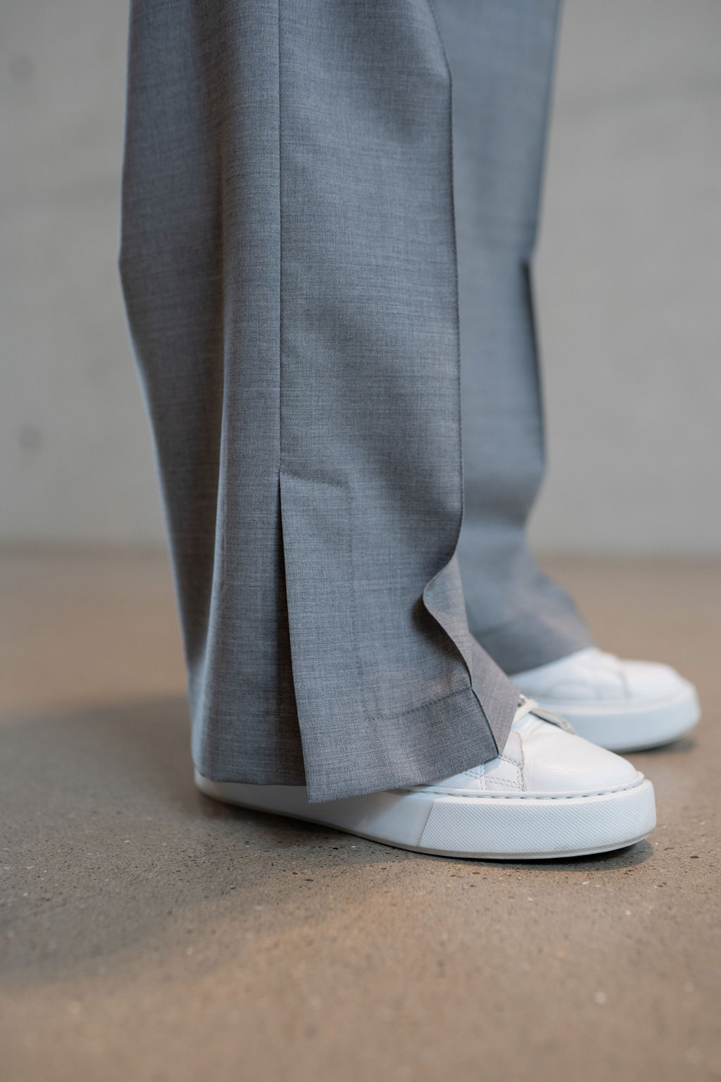 Unsere graue Wollhose AVEN.I – moderne Silhouette mit besonderem Detail.