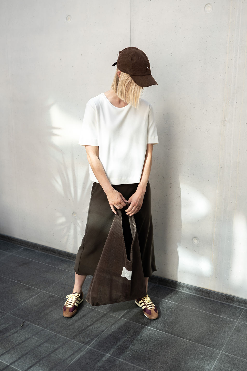 Die charakteristische Struktur des Cordstoffes steht im Kontrast zu dem minimalistischen Design und verleiht der Tasche eine besondere Optik. Zudem ist die Oberfläche besonders weich und angenehm.